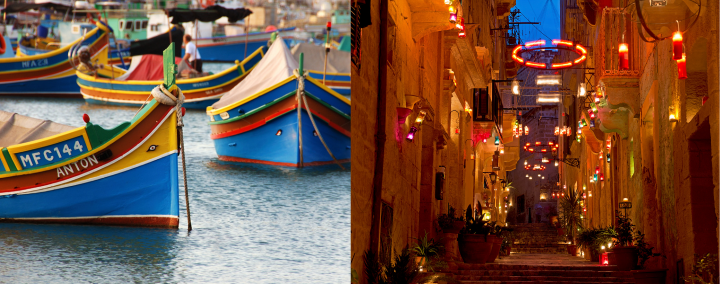 Malte se distingue par son patrimoine exceptionnel, notamment la capitale fortifiée La Valette classée à l’UNESCO, la cité médiévale Mdina et les Trois Cités. Le village de pêcheurs Marsaxlokk, avec ses barques luzzu colorées, témoigne d’une culture tournée vers la mer.