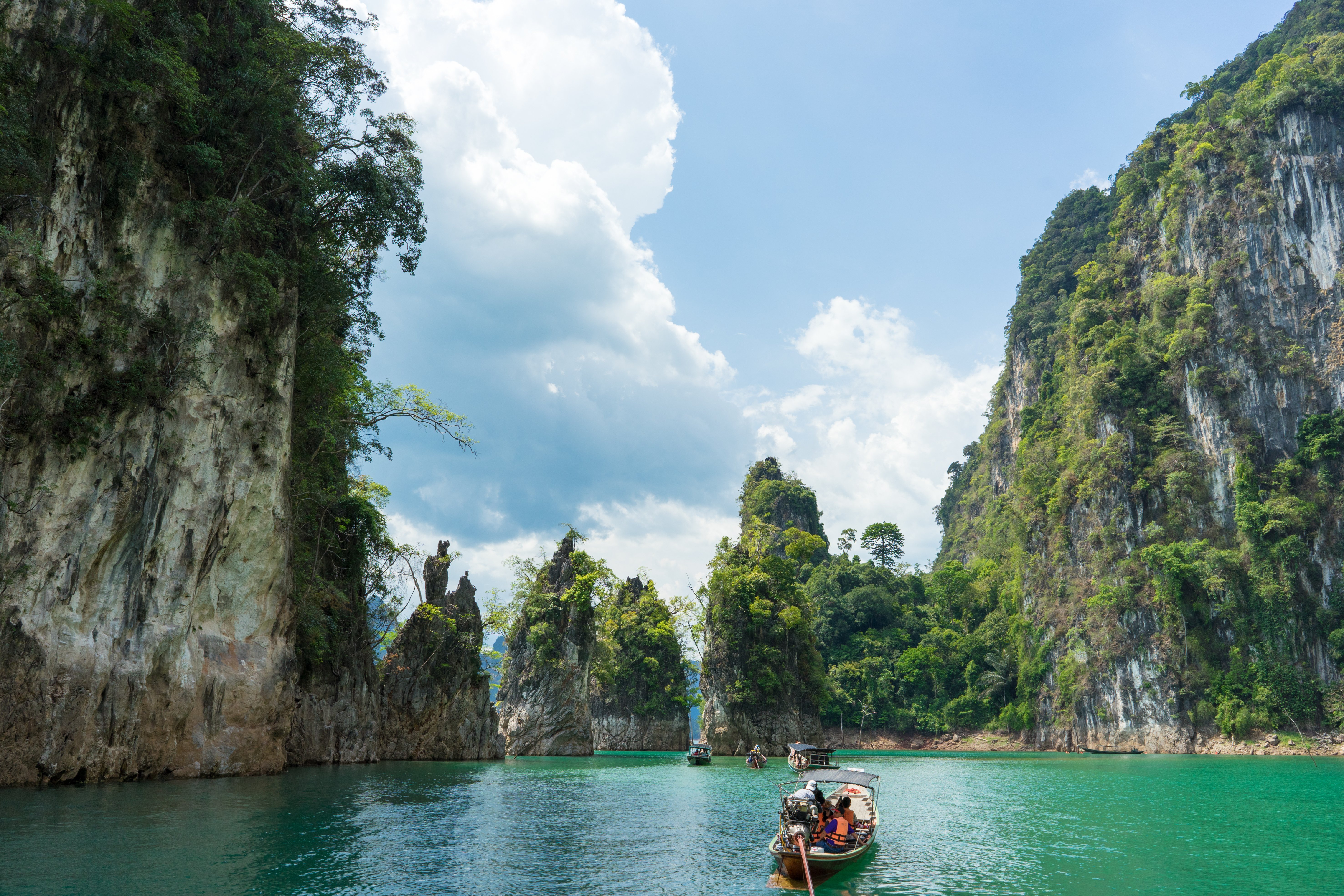Après une nuit insolite dans le train-couchette (une expérience que les jeunes voyageurs adorent souvent !) direction le Sud et le parc national de Khao Sok. C’est ici que l’aventure devient luxuriante, dans une nature sauvage à la beauté brute. Le lac de Cheow Lan, avec ses immenses pitons de calcaire qui surgissent des eaux émeraude, offre un panorama exceptionnel.