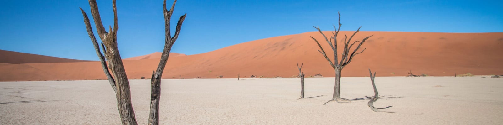 En route pour le désert du Namib ! La dune Elim constitue une halte parfaite pour une fin d’après-midi à votre arrivée à Sesriem. Accessible à pied depuis Sesriem, cette promenade vous permettra d’entendre le chant des geckos. En observant le sol, vous distinguerez leurs petits terriers où ils se cachent. Une fois au sommet de la dune, le spectacle est à couper le souffle : à l’ouest, un océan de dunes rouges, et à l’est, une vaste plaine aux teintes pastel, dominée par une impressionnante chaîne montagneuse.